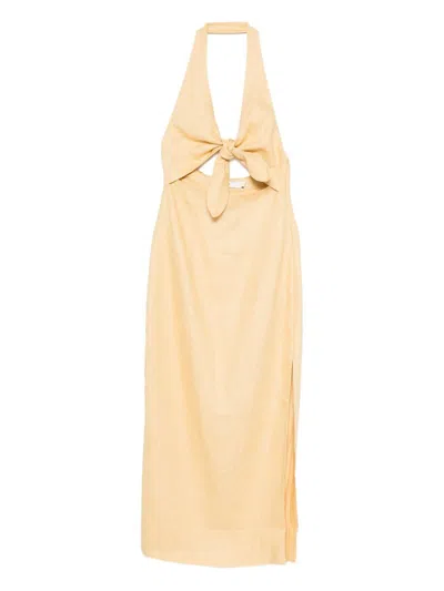 Panettone Wrap-effect Linen Halterneck Midi Dress In Orange
