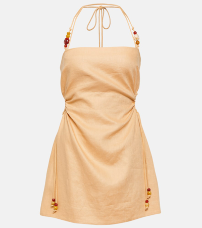 ALESSANDRA刺绣亚麻迷你连衣裙