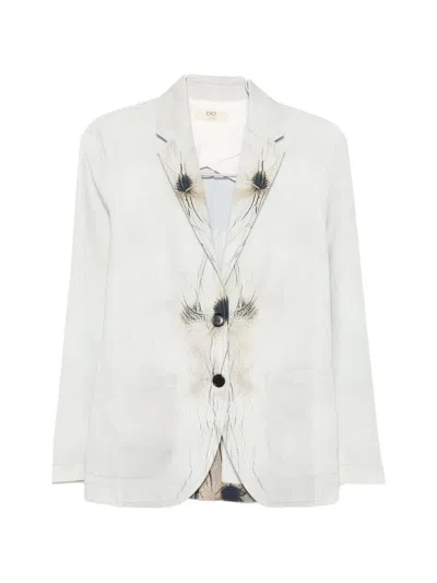 Printed Single-breasted Blazer Jacket In Gray