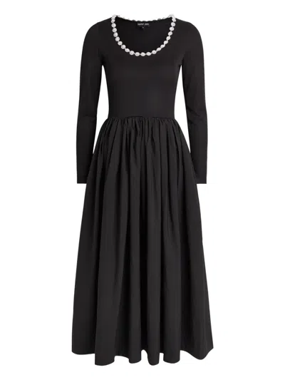 珠饰长袖中长连衣裙
