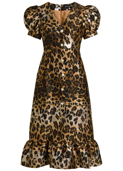 SUITE 泡泡袖豹纹提花中长连衣裙