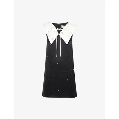 Womens Embellished Satin Mini Dress In Black