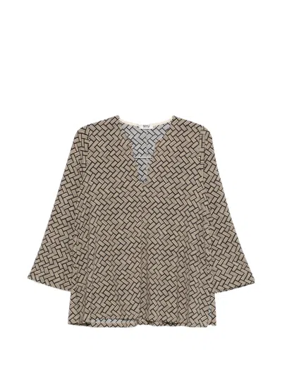 Geometric-pattern Sleeveless Blouse In Brown