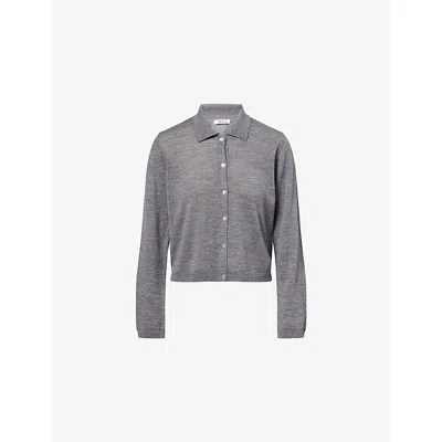 Womens Grey Melange Amethyst Collared Merino Wool Cardigan In Gray