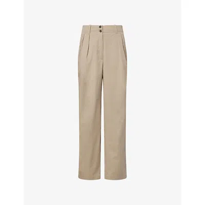 Womens Stone Moss Painter Pleated Wide-leg Cotton Trousers In Neutral