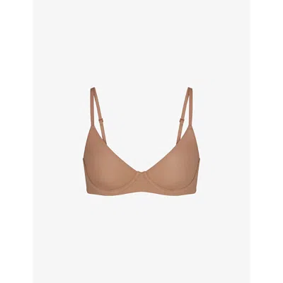 SKIMS成立于2019年,是由美国著名社交名媛金·卡戴珊(Kim Kardashian)打造,致力于打造内衣、家居服和塑身内衣的时尚品牌。SKIMS对各类肤色和体型的人士一视同仁,运用创新面料和高超裁剪工艺,打造出品质上乘、舒适亲肤的内衣作品。SKIMS的审美是广受好评的大地色系,从最初的5种颜色到新上市系列扩展到14个色号,既符合近年来金·卡戴珊的个人风格,另外也更适当减少消费者的选择困难,品牌设计主打舒适与功能,极简的款式配以近肤色或低饱和度的颜色,任何人都可以轻松地选择接近自己肤色的产品。