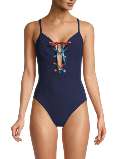 Women's Tie Braker Lacey One-piece Swimsuit In Dark Wash
