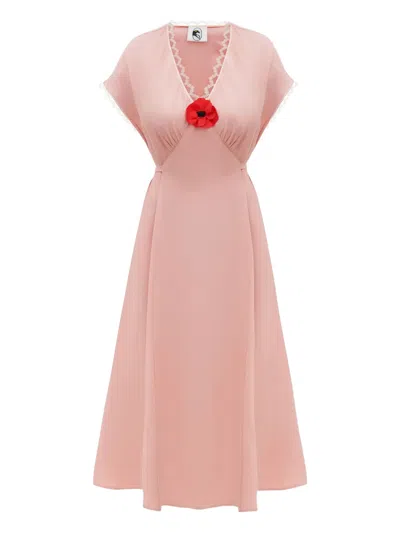 The Bow Lace-trim Satin Midi Nightdress In Pink