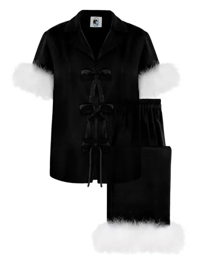 The Bow Pajama Set With Detachable Feathers In Black