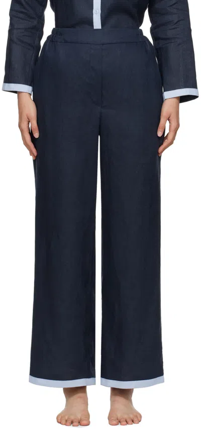 Garrick Embroidered Linen Pants In Navy In Blue