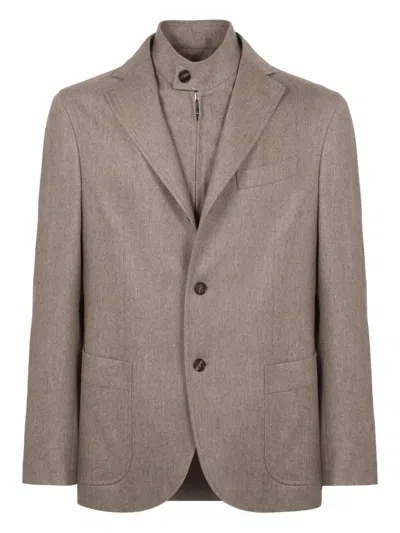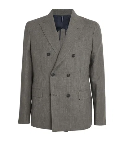 Double-breasted Notched Collar Jacket In Gray