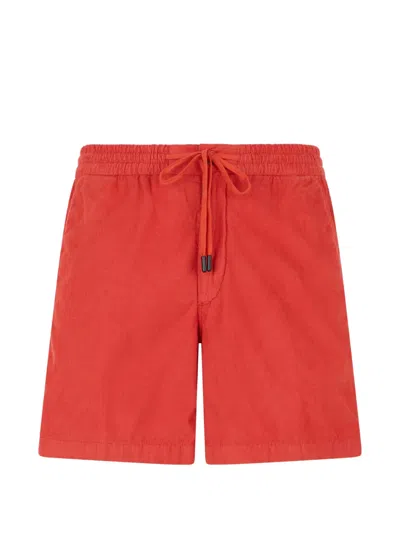 Drawstring Velvet Regular Fit Shorts In Orange