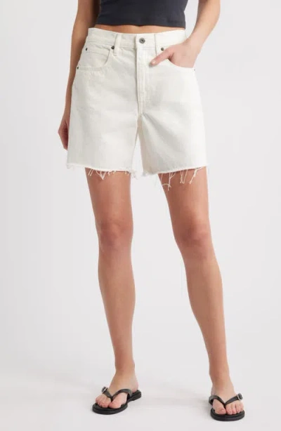 Sienna High Waist Cutoff Denim Shorts In White
