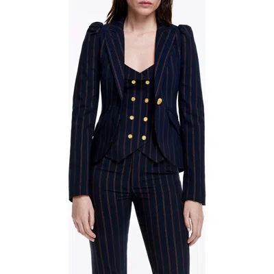 Stripe Puff Shoulder Blazer In Navy/copper Pinstripe