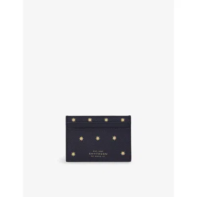 Womens Navy Stars Panama Flat Leather Card Holder In Black