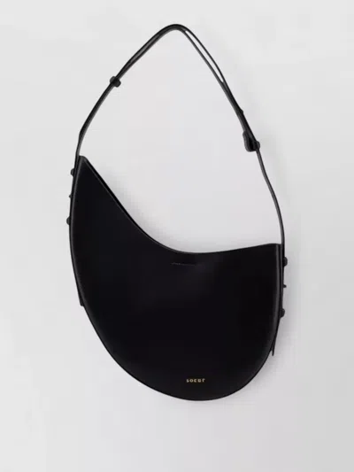 Contemporary Crescent-shaped Black Leather Shoulder Bag