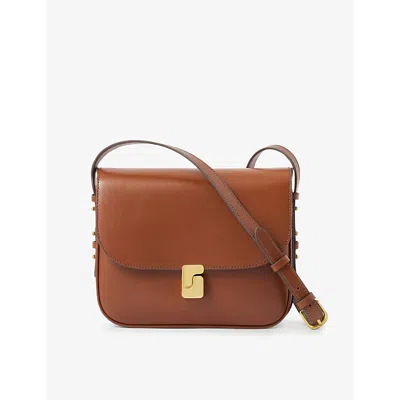Womens Hazelnut Belissima Branded-buckle Mini Leather Cross-body Bag
