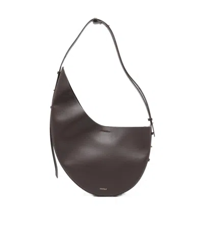 Crescent-shaped Bordeaux Leather Shoulder Bag In Brown