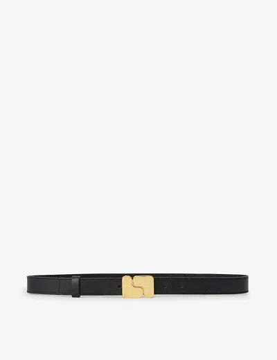 Womens Noir Ninon Lizard-embossed Leather Belt In Black