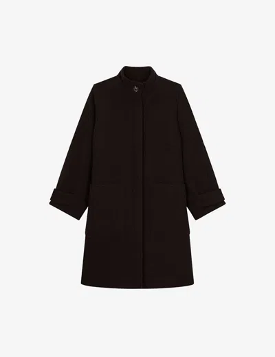 Womens Brown Villanova High-neck Relaxed-fit Wool-blend Coat