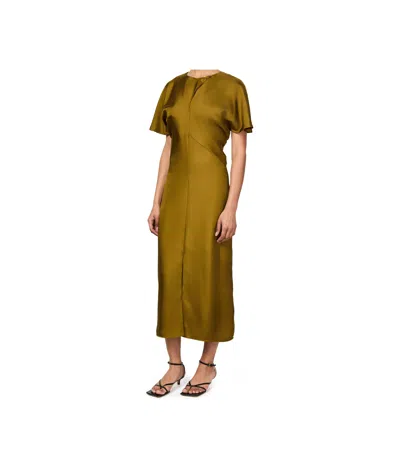 Womens Green Uruguay Split-hem Flared Woven Midi Dress
