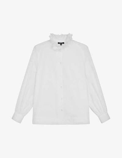 Womens White Villandry Stand-collar Regular-fit Cotton-poplin Shirt
