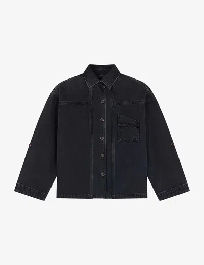 Lion Asymmetric-collar Denim Shirt In Black