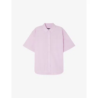 Womens Blanc Berry Scalloped-trim Relaxed-fit Cotton Shirt