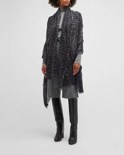 Lightweight Cashmere Leopard-print Scarf In Gray Leopard