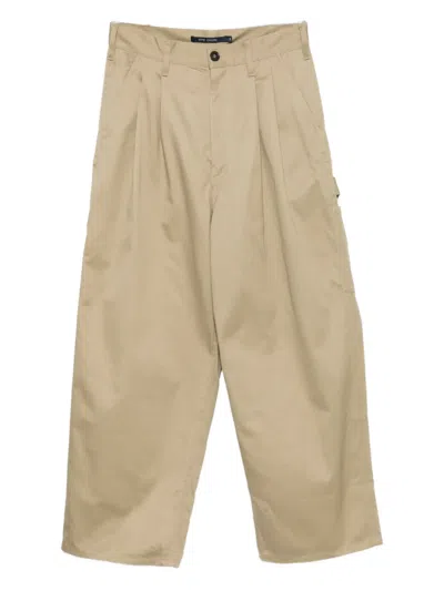 Hammered Cotton Trousers With Straight-leg Silhouette In Neutral