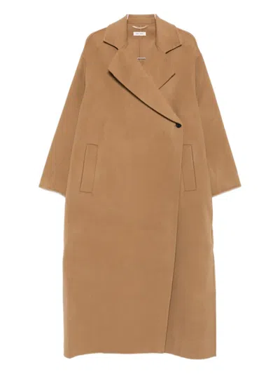 Wool-cashmere Long Coat In Brown