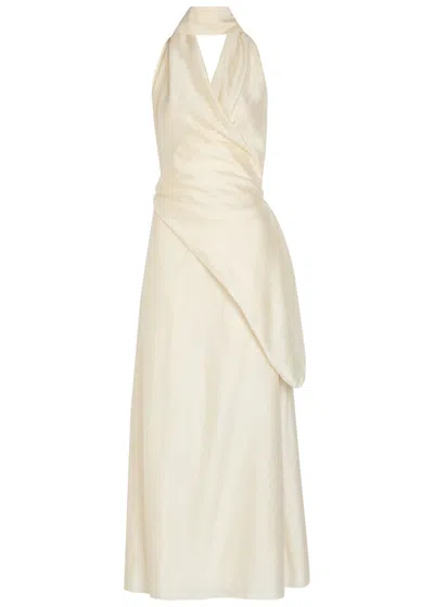 Antonella Embroidered Draped Maxi Dress In White