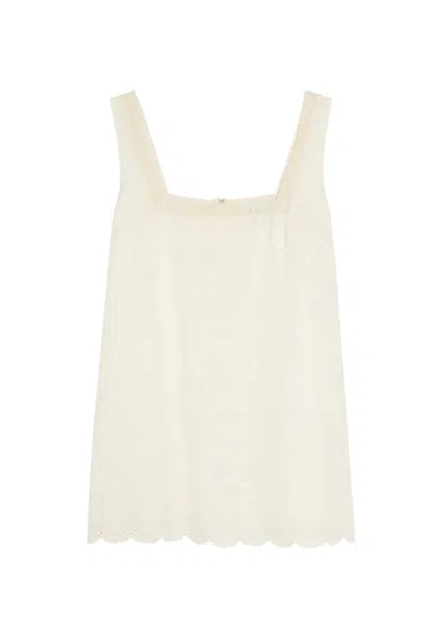 Iris Embroidered Cotton Top In White