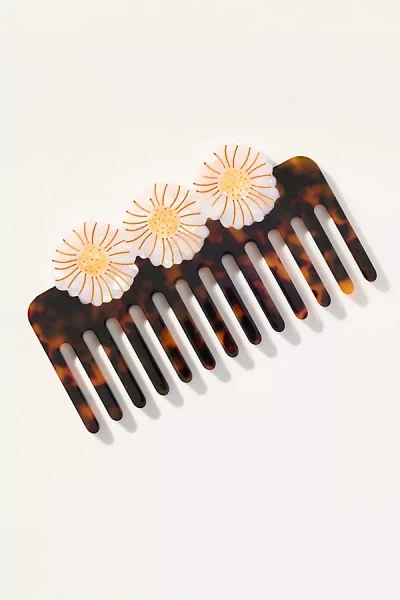 Handpainted Wide Tooth Comb In Brown