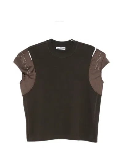 Contrast-panel Stitch-detail T-shirt In Brown