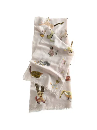 Animal-motif Fringed Scarf In Neutral