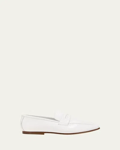 Essenziale Croco Penny Loafers In White Croc-embossed
