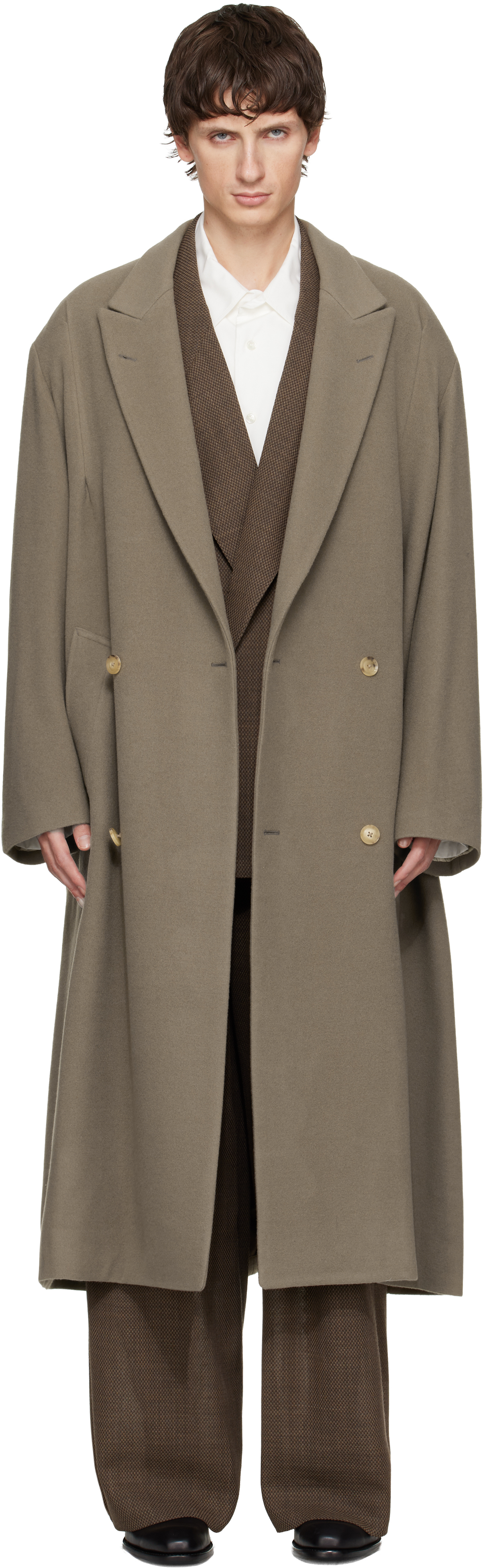 Beige Draped Dart Wool Cashmere Chesterfield Coat In Brown