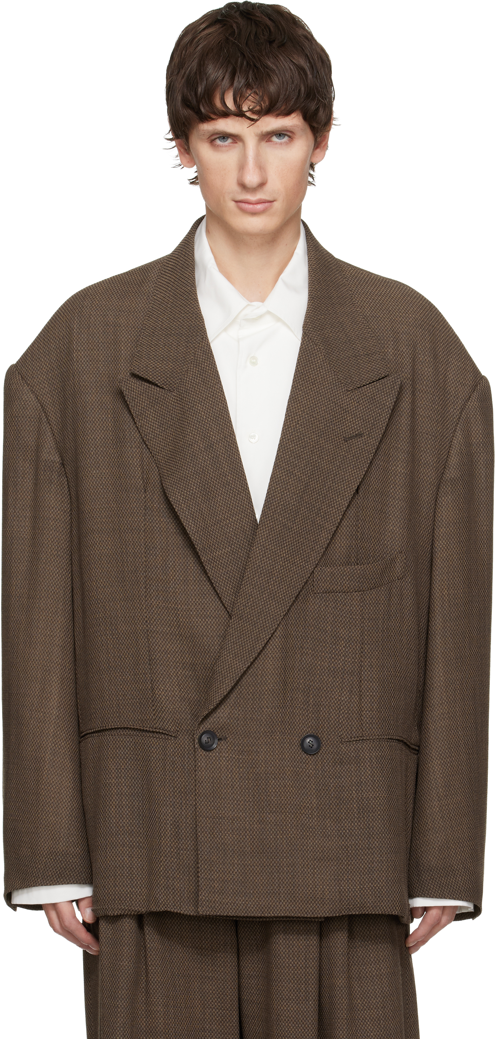 Brown Round Big Shoulder Wool Serge Blazer