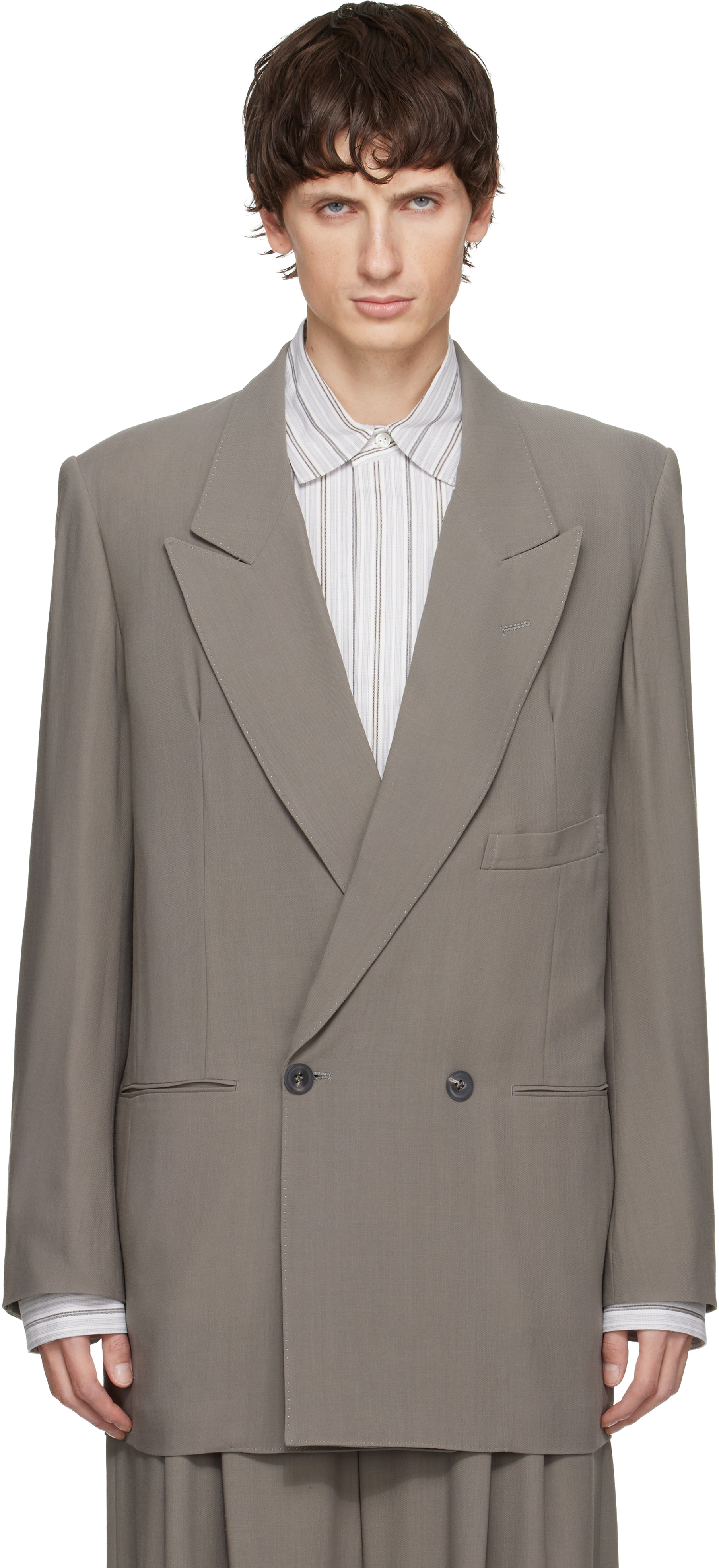 Gray Interlining Pocket 2b Double Breasted Blazer