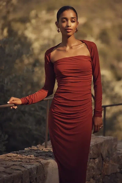 Venus Long-sleeve Ruched Maxi Dress In Red