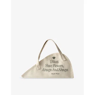 Womens White Monet Quote Cotton Flower Tote Bag