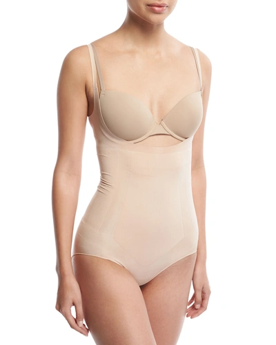 Supersculpt Totalcontour Open-bust Mid-thigh Bodysuit In Beige
