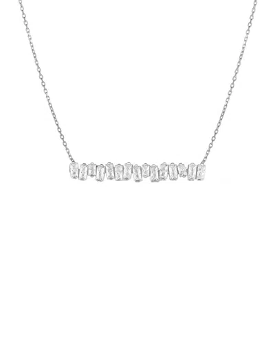 14k Over Silver Cz Baguette Bar Necklace In Metallic