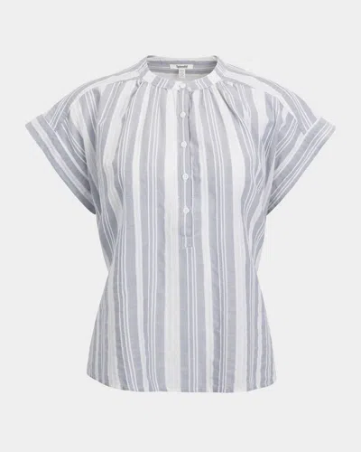 Raegan Striped Linen-blend Blouse In Blue