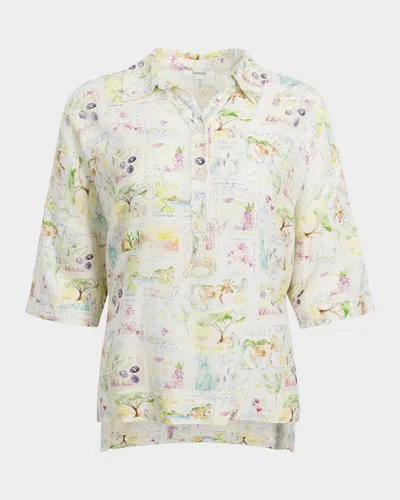 Catalina Short Sleeve Linen Blend Button-up Shirt In White