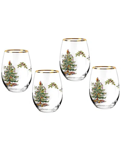 Christmas Tree Stemless Wine Glasses, Set Of 4 In Green