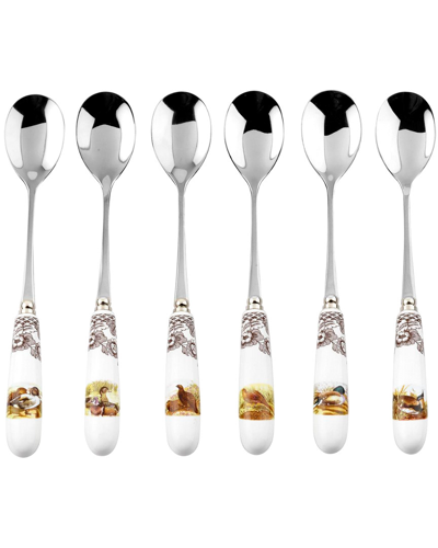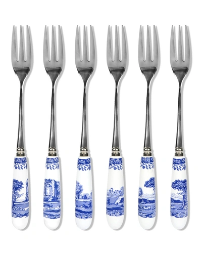 Blue Italian Set Of 6 Teaspoons In Blue/white