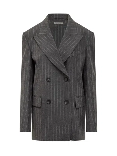 Blazer Double-breasted Striped Pinstriped Grey In Gray