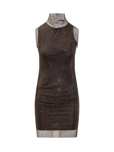Sleeveless Top Silk Nylon Mesh Embellishments In Black